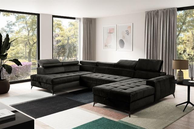 Wohnlandschaft Schlafsofa AGNESA Stoff Salvador Schwarz Ottomane Rechts 1818,00 EURO Zum Produkt