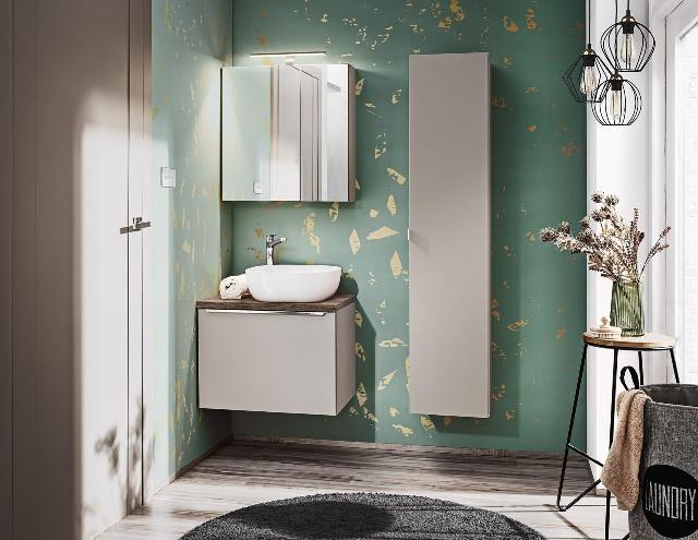 OUTLET Badmöbel Set 3-tlg Badezimmerset AKAN Taupe Spiegelschrank 60cm ohne W... 558,00 EURO Zum Produkt