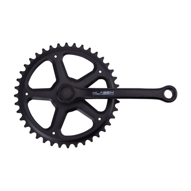 MP Kettenradgarnitur 1-fach, 4-kant, 150mm Kurbellänge, schwarz Stahl, 1/2" x 3/32", Einpresstiefe ca. 3mm, 44Zähne, kpl.