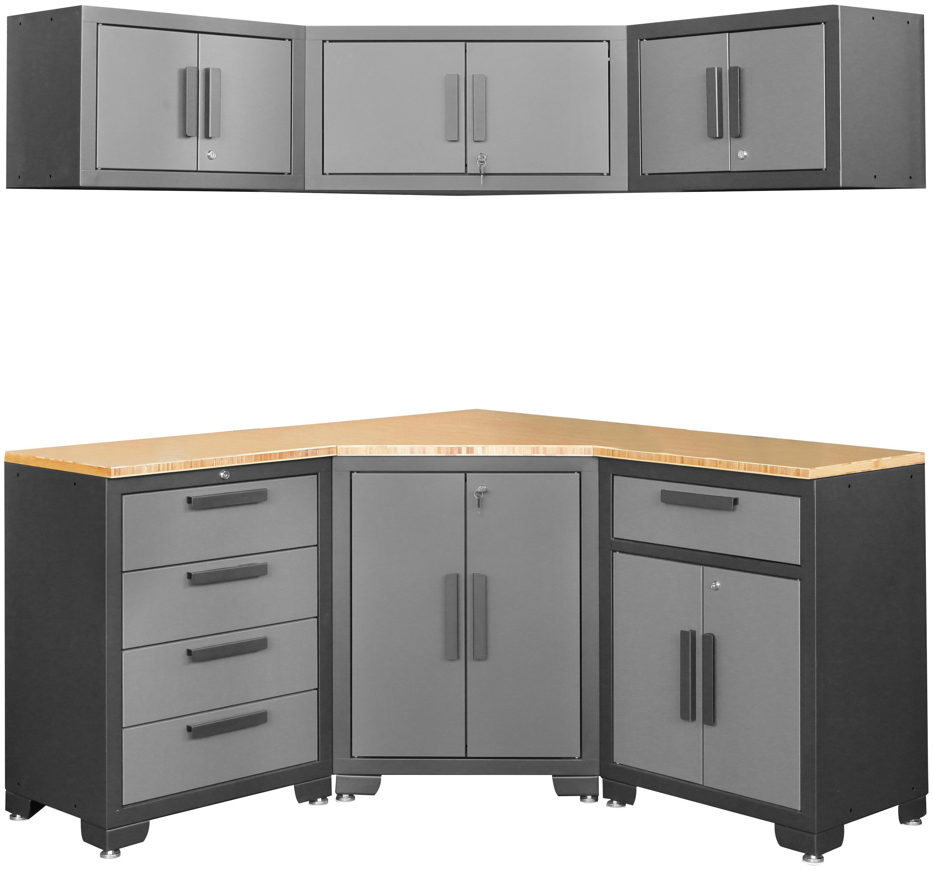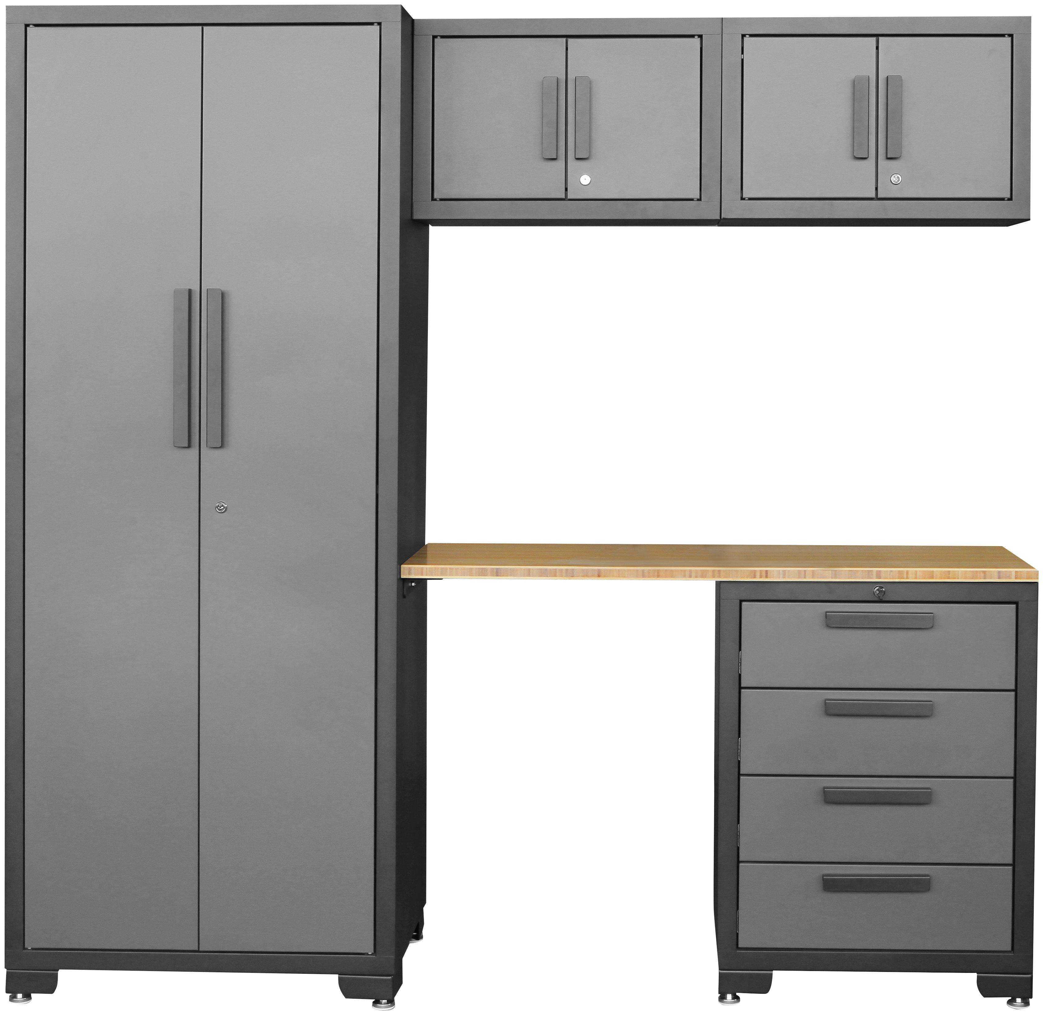 Profiwerk Werkbank "Werkstattset Melbourne", (Set, 6 tlg.), montiert, abschließbar, höhenverstellbar, viele Aufstellmöglichkeiten