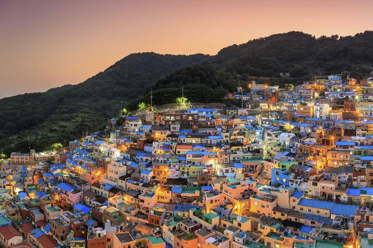 queence Acrylglasbild "Stadt" Bäume Gebäude Skyline Städte Fine Art-Print in Galeriequalität