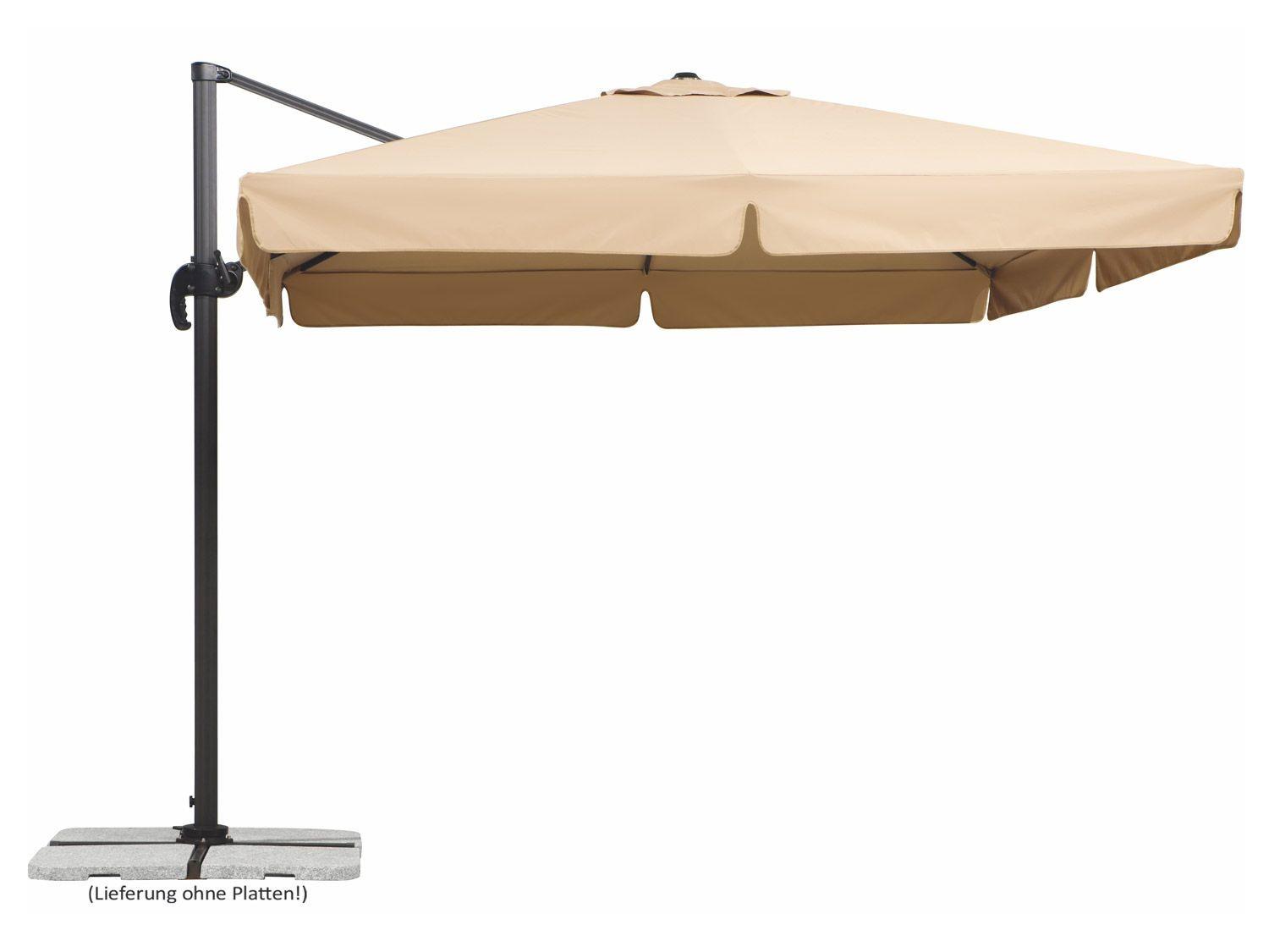 Einsatzbereich: Garten oder TerasseAusstattung: Inklusive Schutzhü,lle mit Reiß,verschluss und Stab, pulverbeschichtetes Alu/Stahl-GestellLichtschutzfaktor: 80 (UV-Standard 801)