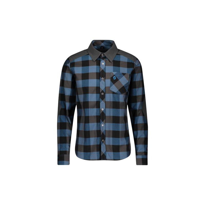 Scott Shirt M's Trail Flow Check l/sl - atlantic blue/dark grey/L
