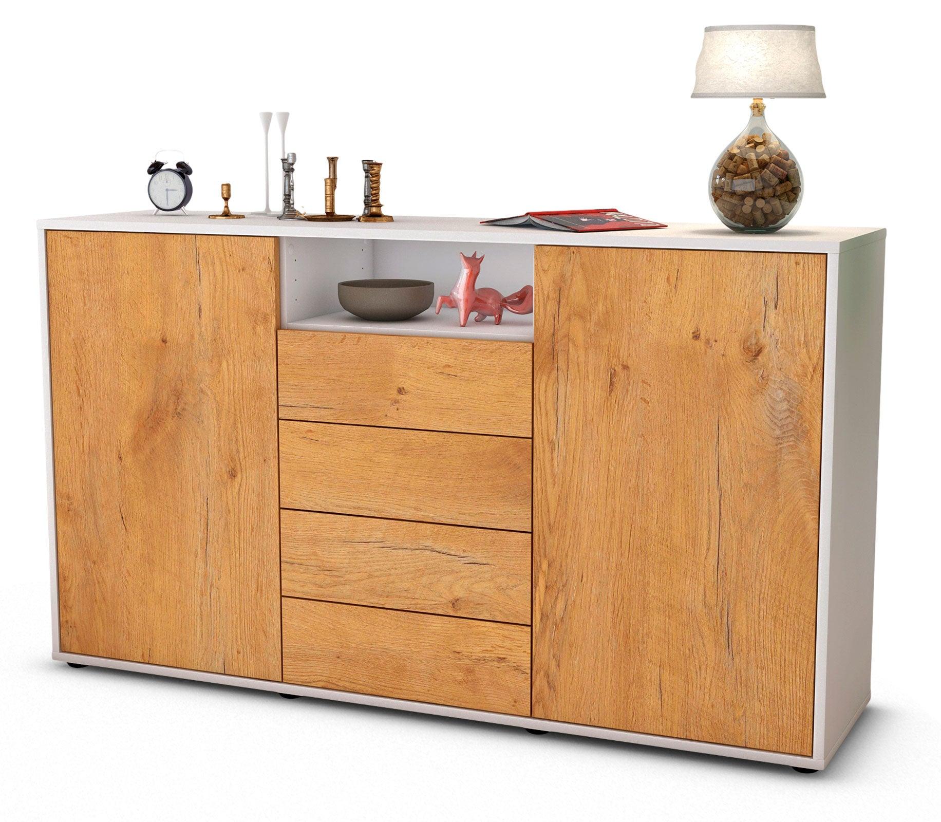 Unser Sideboard ist der Allrounder unter den Kommoden. Die mittlere Höhe kann überall eingesetzt werden. Verwendet wird es oft als Wohnzimmerschrank, Wäscheschrank oder Flurmöbel. Egal für welchen Raum, ob Esszimmer, Flur, Küche, Wohn-, Kinder- oder Schlafzimmer, unsere Sideboards lassen sich vielseitig einsetzen. Gestalte Deine Wohnräume individuell und mordern.