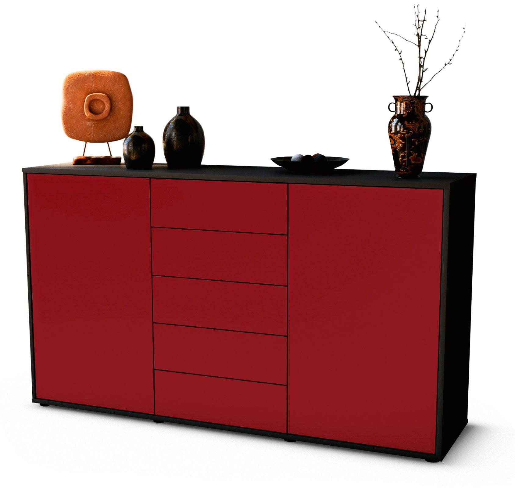 Dieses Sideboard hat Gesamt-Maße von 136x79x35cm. Viel Platz, eine leere Wand, kein passendes Möbelstück? Unsere 1,36 m lange Kommode ist die perfekte Lösung! Die Frontfarbe dunkles Bordeaux Rot bringt Wärme ins Haus. Das intensive Weinrot ist einer der edelsten Rot Töne und verleiht jeder Einrichtung einen Glamour Faktor.Der weiße matte Korpus kann überall integriert werden. Mit der beruhigenden Farbe weiß, findet sich leicht Stellplatz für dieses schöne Möbelstück.
