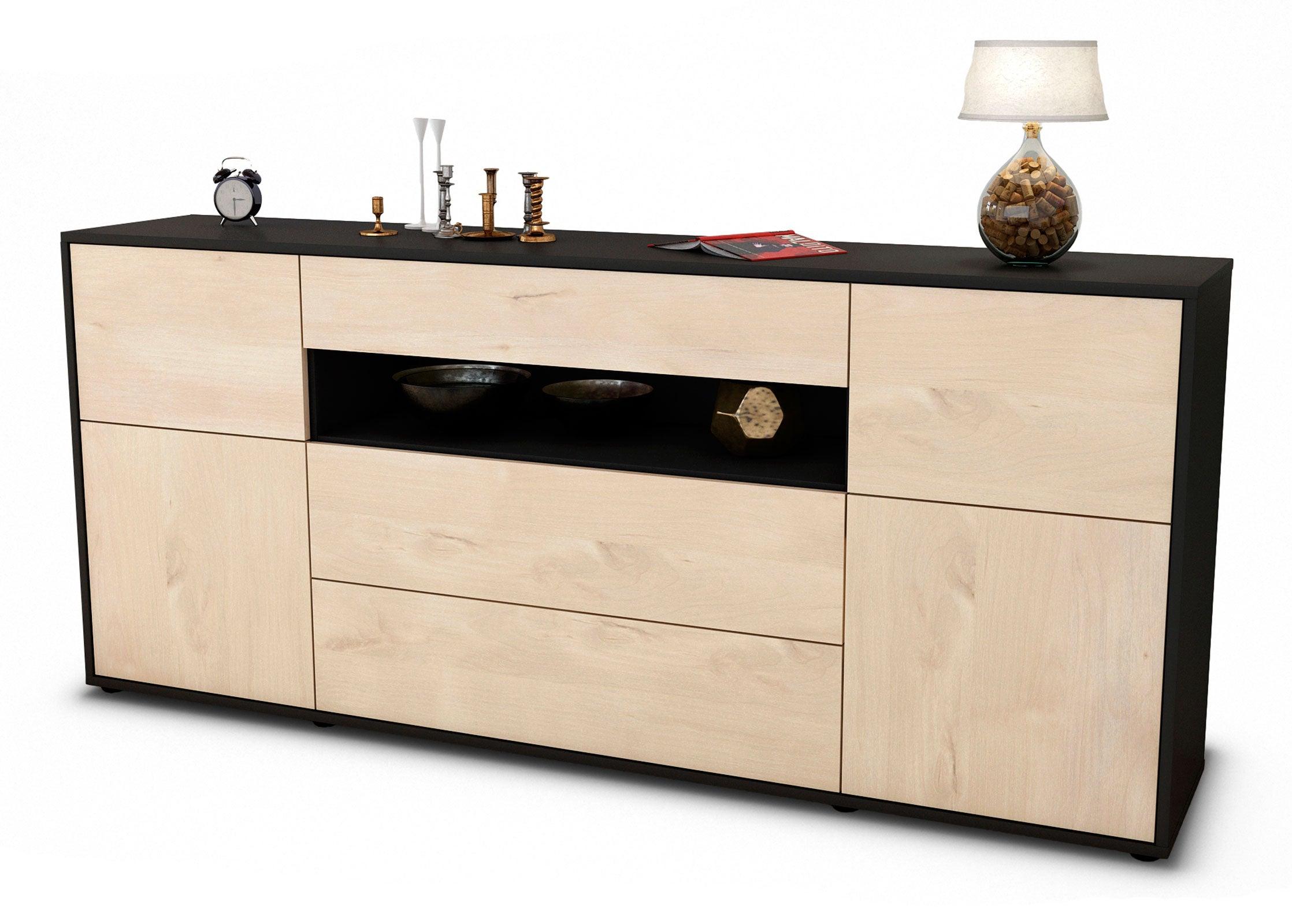 Unser Sideboard ist der Allrounder unter den Kommoden. Die mittlere Höhe kann überall eingesetzt werden. Verwendet wird es oft als Wohnzimmerschrank, Wäscheschrank oder Flurmöbel. Egal für welchen Raum, ob Esszimmer, Flur, Küche, Wohn-, Kinder- oder Schlafzimmer, unsere Sideboards lassen sich vielseitig einsetzen. Gestalte Deine Wohnräume individuell und mordern.