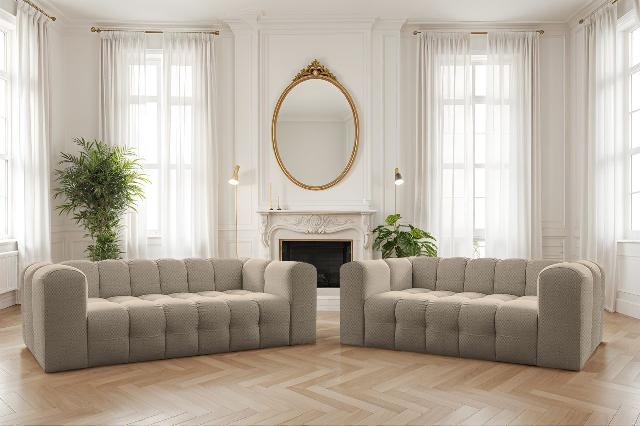 Sofaset Designersofa SOLVIE 2-2 in Stoff Moly Beige