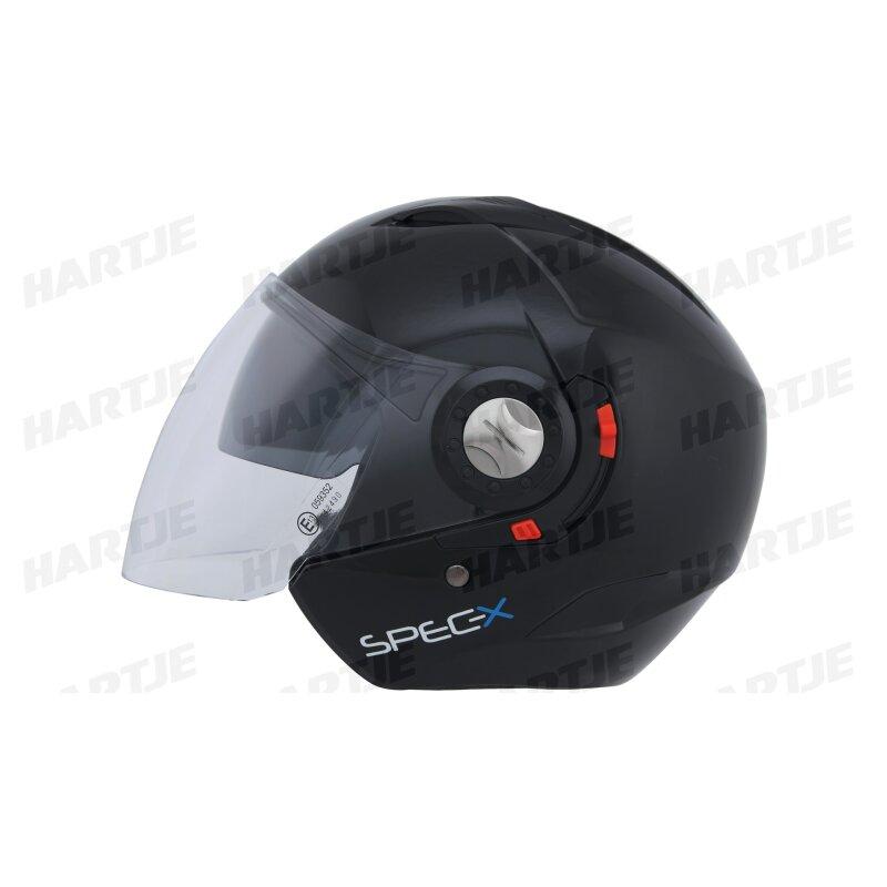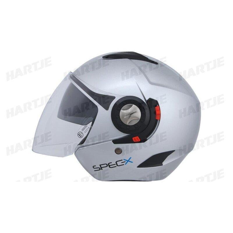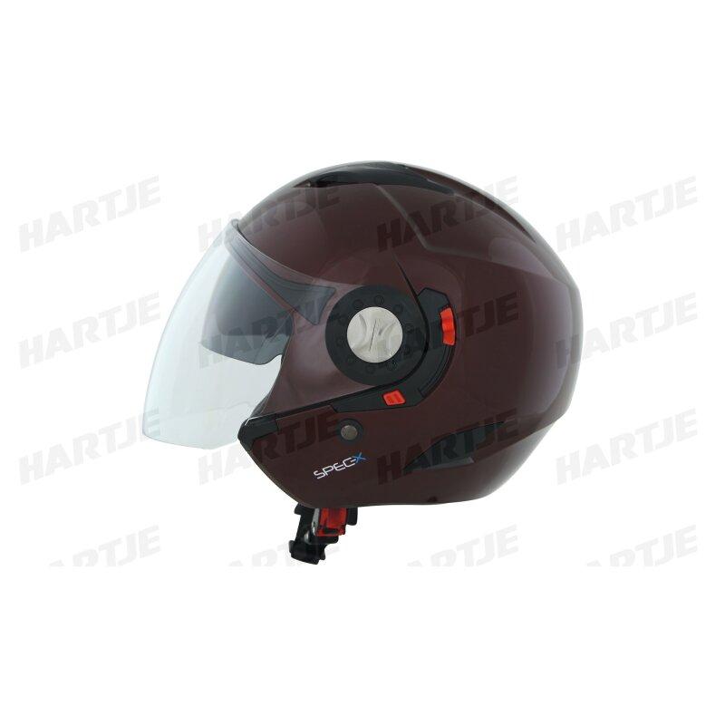 SPEC-X Jethelm "SX-22.01" Innenliegende Sonnenblende, kratzresistentes Visier, Wangenpolster und Innenfutter herausnehmbar und waschbar, Material: ABS lackiert, Gewicht: 1250g (+/- 50g), ECE22-05 Norm., rot, Gr. 53 / 54 = XS