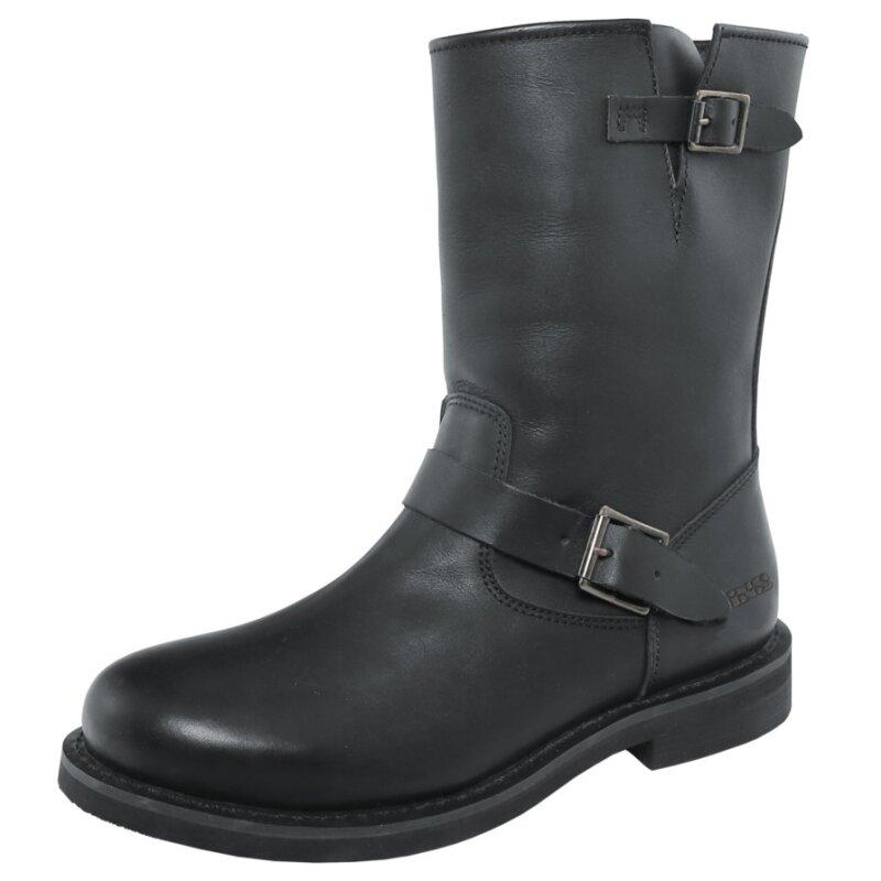 Stiefel Classic Engineer Oiled Leather schwarz 44Klassicher Stiefel aus geöltem, vollnarbigem Rindsleder Textil-Innenfutter Komfort-Fussbett Verstärkte Fersenkappe Metall-Schnallen und verstellbare Lederriemen über dem Rist und am Schaft Rahmengenähte, abriebfeste Gummisohle Reissverschluss an der Innenseite Sicherheit: erfüllt die Prüfnorm EN13634:2015 Obermaterial: Rindsleder Futter: 100% Polyester