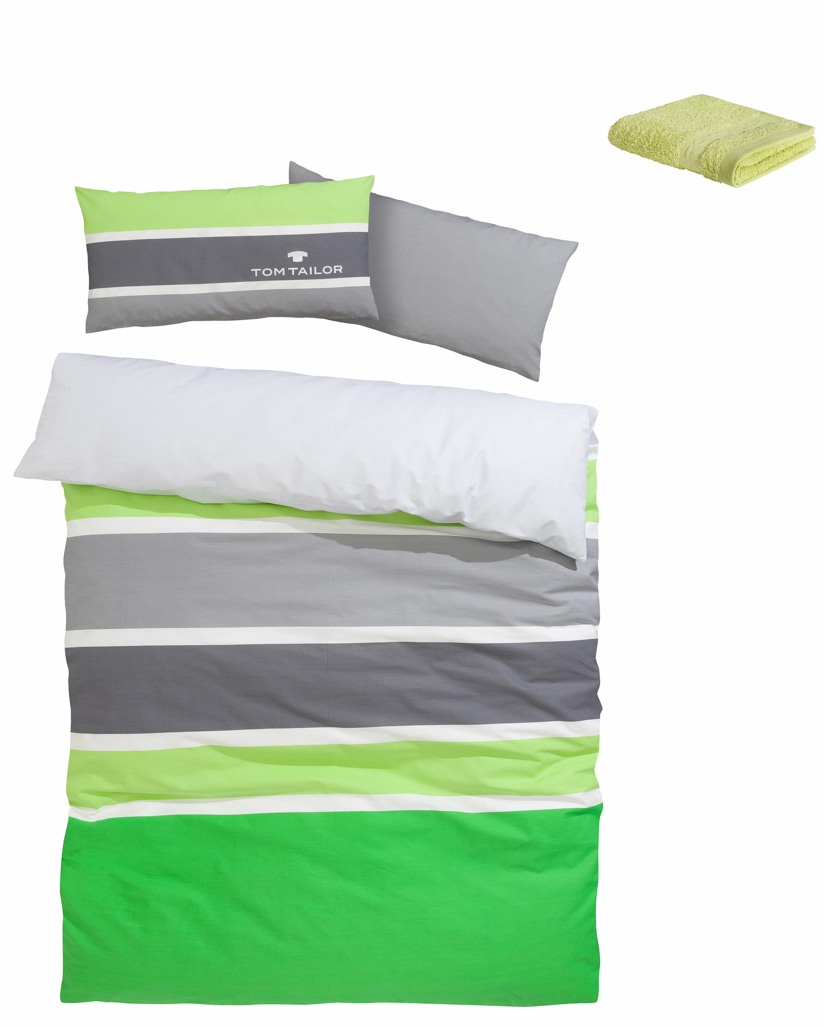 TOM TAILOR HOME Bettwäsche "Felix in Gr. 135x200 oder 155x220 cm", (2 tlg.), mit GRATIS-Zugabe: Gästehandtuch, mit Reißverschluss