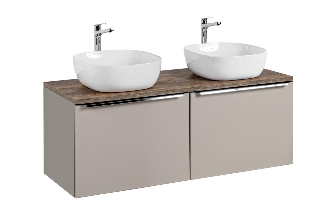 Waschtischunterschrank 4-teilig - AKAN - Taupe inkl. 2 x Aufsatzwaschtisch Schaffen Sie eine freundliche Atmosphäre! Die AKAN-Kollektion wurde...