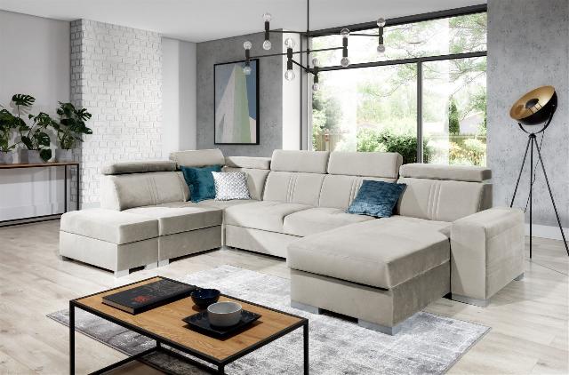 Wohnlandschaft Schlafsofa NOLAN inkl. USB Stoff Monolith Beige Ottomane Rechts 1288,00 EURO Zum Produkt