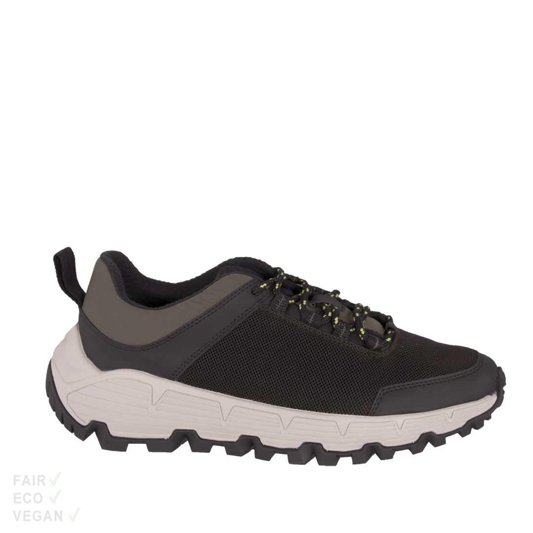 Leichte Sneaker von WVSport Die leichten 5-Loch-Sneaker von Wills Vegan Sport haben ein sportliches Design und sind die perfekte Wahl für die aktive Freizeitgestaltung. Mit hervorragender Passform und dem atmungsaktiven Material bieten die Wills Sneaker höchsten Tragekomfort bei fast jeder Outdoor-Aktivität. Das moderne Design mit dynamischen Linien und Farbkombinationen verleiht deinem Outfit den letzten Schliff und lässt dich dabei gut aussehen. Der Schuh ist aus hochwertigem Material gefertigt und hat eine robuste Sohle für maximale Stabilität und Haltbarkeit. Egal ob beim Sport oder in der Freizeit, mit den leichten WVSport Trail Running Trainers bist du immer stylisch unterwegs. Obermaterial: Mesh-Obermaterial aus recyceltem Polyester. Atmungsaktiv. Innenmaterial: Von 37.5® Technology. Aus recyceltem Polyester und Nylon. Temperaturregulierend. Sohlen: Vibram® Trailrunning-Laufsohlen Schaft/Absatz/Extras: Absatzhöhe hinten ca. 3,5cm und vorne 2,5cm. Die Innensohlen sind herausnehmbar. Schuhpflege: Leicht zu pflegen. Einfach nur mit einer Bürste reinigen. Bei größeren Verschmutzungen mit einem in lauwarmem Wasser getränktem Lappen reinigen. Fair | Vegan | Ökologisch: Fair: Hergestellt in Portugal. Vegan: Alle verwendeten Materialien sind ohne tierische Inhaltsstoffe. Ökologisch: Teilweise aus recycelten Stoffen. Die Schuhkartons haben kurze Transportwege innerhalb Europas. WVSport Trailrunning Trainer Vibram Sohlen Vibram Sohlen sind weltweit bekannt für ihre hervorragende Qualität und Langlebigkeit. Die Geschichte der italienischen Sohlen begann bereits im Jahr 1937. Seither arbeitet die Firma kontinuierlich an der Entwicklung und Verbesserung ihrer Sohlentechnologie. Vibram Sohlen sind speziell für den Einsatz in Outdoor-Schuhen konzipiert und bieten eine optimale Kombination aus Griffigkeit, Stabilität und Komfort. Hergestellt in Portugal Portugal ist bekannt für seine hochwertige Schuhproduktion. Viele namhafte Schuhmarken produzieren ihre Schuhe in portugiesischen Fabriken, die für ihre Handwerkskunst und die Verwendung von hochwertigen Materialien bekannt sind. Um Schuhe von höchster Qualität herzustellen werden in diesen Fabriken traditionelle Herstellungstechniken mit modernen Produktionsmethoden kombiniert. Wills Vegan Shoes William Green ist Gründer der britischen Marke Wills Vegan Shoes. Seit 2013 werden unter dem Namen Wills Vegan vegane Schuhe in Portugal hergestellt. Wills Vision war es, eine Alternative zu den herkömmlichen Lederschuhen anzubieten und dabei auf tierleidfrei Materialien zu setzen. William Green und sein Unternehmen setzen sich nicht nur für Tiere ein, sondern auch für Umweltschutz und faire Arbeitsbedingungen. Das Unternehmen ist stolz darauf, dass alle Schuhe ethisch und nachhaltig hergestellt werden. Wills Vegan Shoes ist mittlerweile zu einem erfolgreichen Unternehmen gewachsen und wird weltweit von Menschen geschätzt, die nicht nur Wert auf Mode legen, sondern auch auf Nachhaltigkeit und ethisches Handeln.