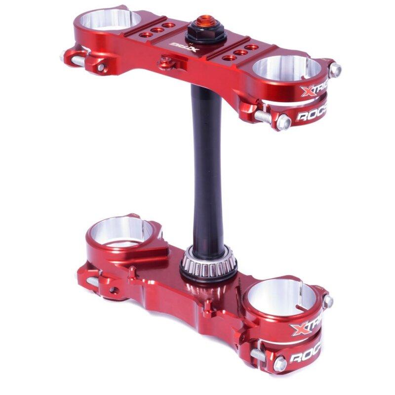 Xtrig Gabelbrücken-Kit ROCS SM Offset 12-14Die von Xtrig für 2016 neu entwickelten ROCS Tech Gabelbrücken bieten alle Vorteile der ROCS Brücken. Die Brücken werden mit dem Standard Offset geliefert. Der Versatz ist im Vergleich zu den Standard ROCS Brücken nicht verstellbar. Lenkeraufnahmen M12 bitte gesondert bestellen. Besseres Ansprechverhalten der Gabel: Perfekte Rundheit im Klemmbereich auch unter Belastung Höhere Verdrehsicherheit der Gabel: Selbsthemmung der Gabelrohre in beide Richtungen Optimale Funktion der Gabel: Geteilte Klemmschellen verbessern die Biegelinie der Gabel Sichere Klemmung der Gabel: Kein gegenseitiges Beeinflussen der Klemmschrauben-Vorspannung Geringeres Gesamtgewicht: Kein Material zwischen den Klemmschrauben Farbe: rot Offset: 12/14